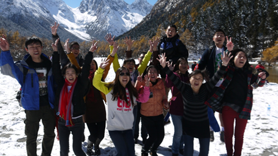 我們一路擺各種POSS照像,團(tuán)個(gè)雪球攻擊對(duì)方,笑聲歡呼聲不斷,同行的黃姐姐提出一定要堆一個(gè)雪人,圓她兒時(shí)的夢想。大家積極響應(yīng),兩個(gè)小女孩兒也是跑上跑下,收擾積雪團(tuán)雪球。我們的雪人很快成功了,可惜的是沒有帽子呀?jīng)]有圍巾呀?jīng)]有掃帚呀,小學(xué)教材里的雪人不是都有這些嗎?雪人,下次我給你帶來。